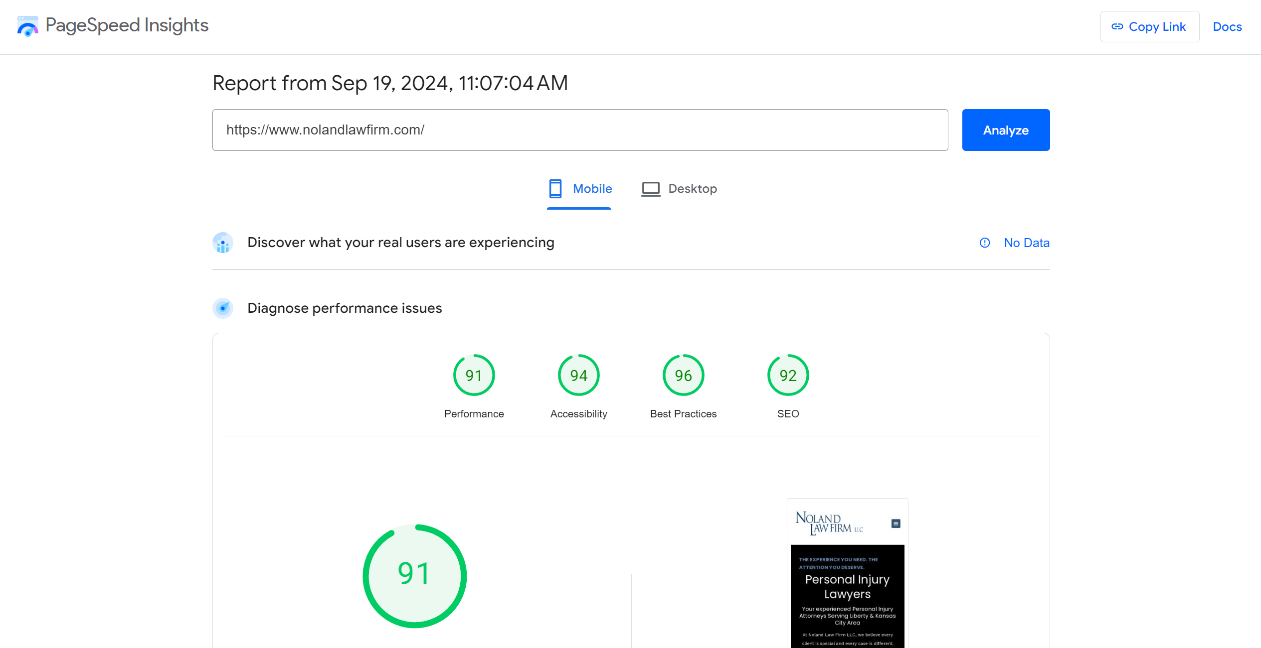 Run your law firm’s website through Google’s PageSpeed Insights tool to see how your site performs.