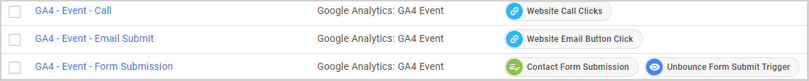 We use Google Tag Manager for clients to create tags and triggers to track form submissions and click-to-calls